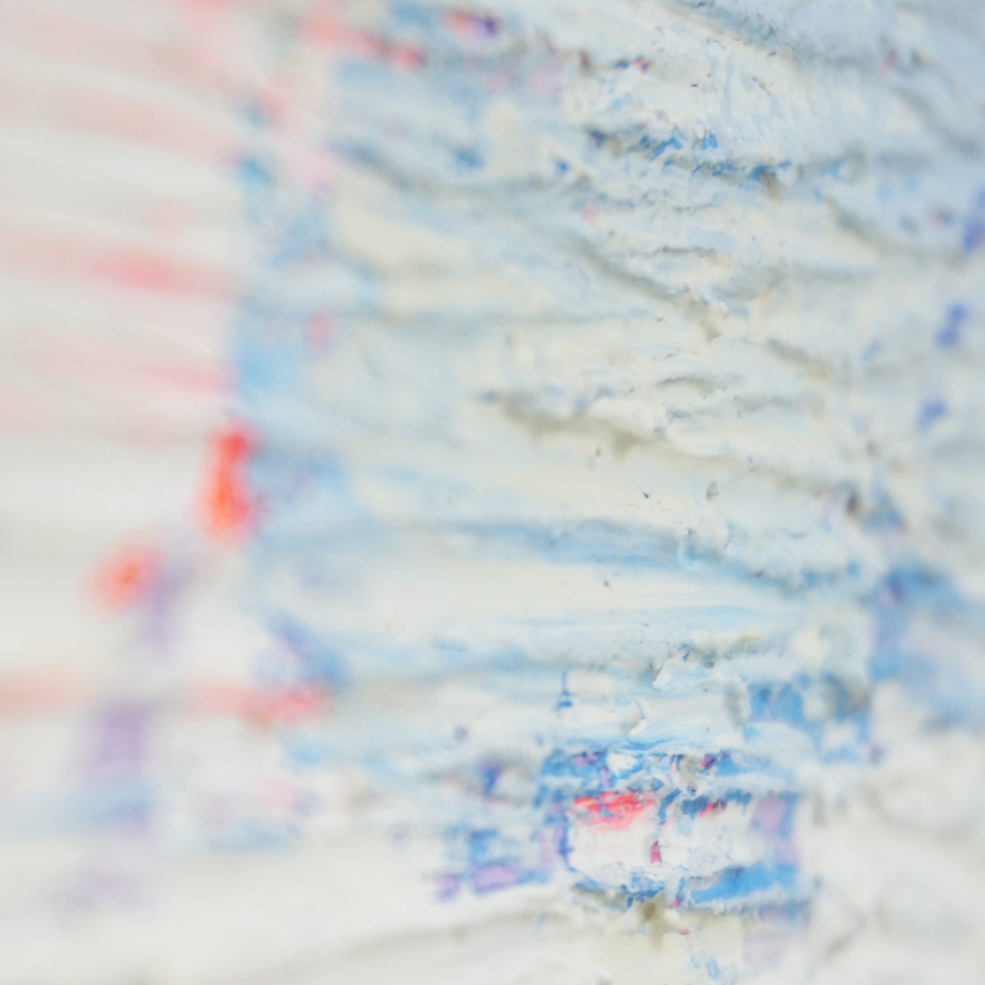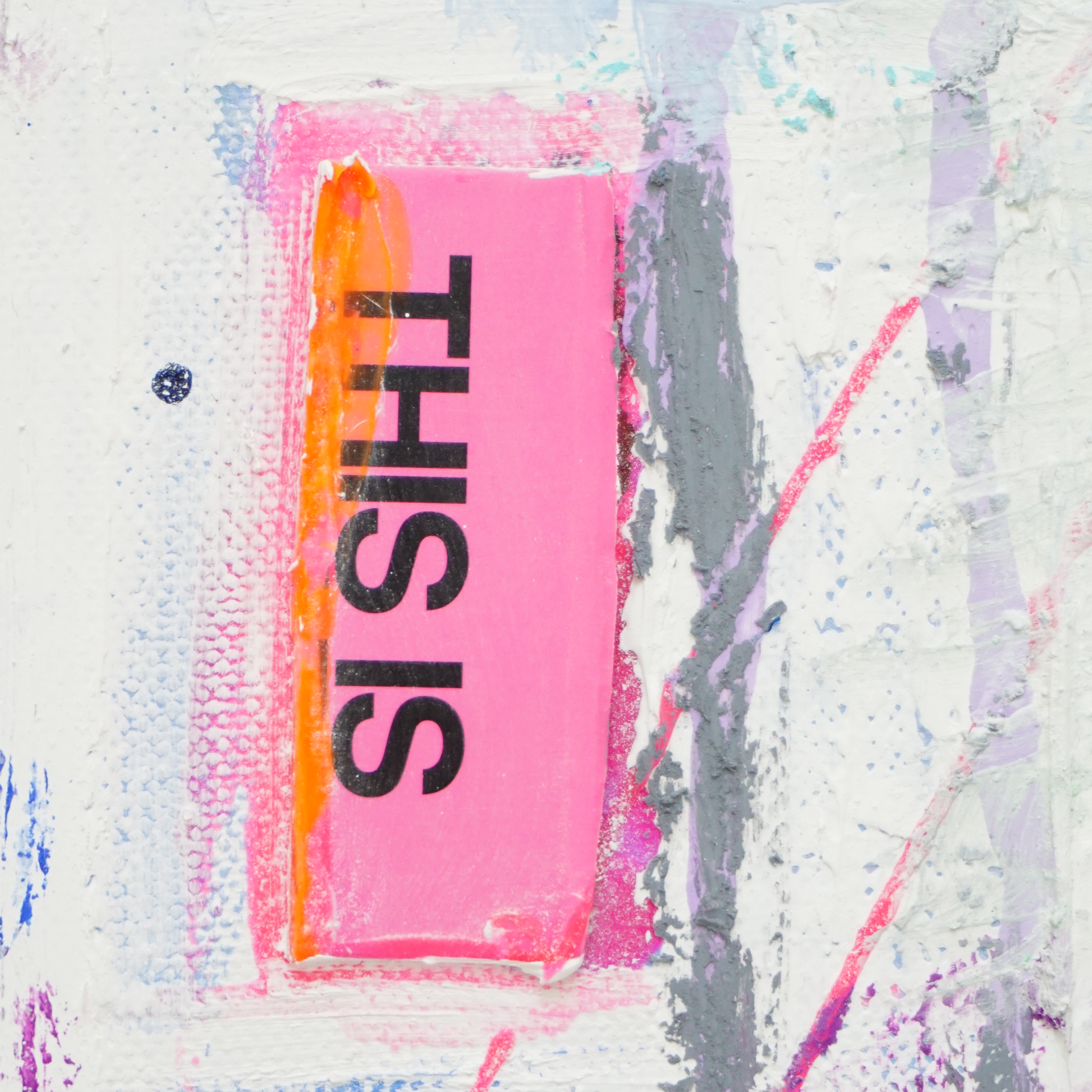 Ein leises, zugleich intensives Werk: Auf der hellen, fast weißen Grundfläche wiederholen sich handschriftliche Worte wie ART und TIME, eingebettet in feine Strukturen und Schichtungen. Dezente Blau- und Rosatöne verleihen dem Bild eine fragile Tiefe, während Neonakzente in Pink und Orange überraschende Energie hineingeben. Ein Werk zwischen Ruhe und Impuls, das den Betrachter einlädt, genauer hinzusehen.